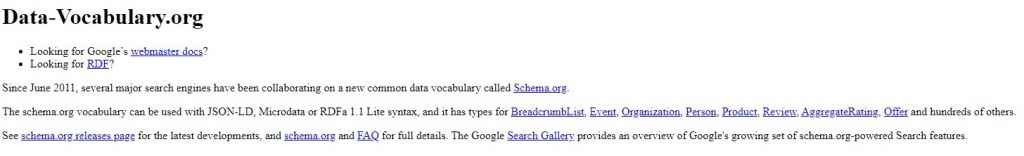 • Data vocabulary. Устаревшая микроразметка от компании Google. Плавно перетекла в Schema.org;