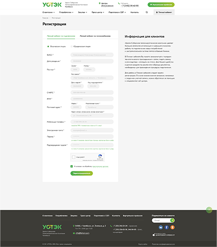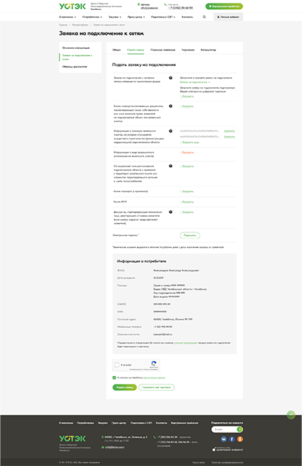 • Обеспечение заполнения заявки в «Личном кабинете» на сайте АО «УСТЭК-Челябинск» по заданной форме, согласно законодательству РФ.
