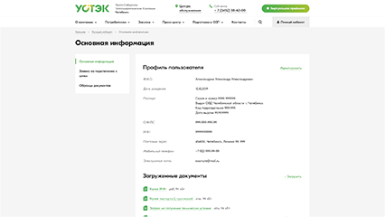 • Личный кабинет по теплоснабжению физических и юридических лиц, где пользователи могут получать информацию о заключенных с АО «УСТЭК-Челябинск» контрактов, передавать показания индивидуальных приборов учета, отслеживать расчёты (начисление, оплата, перерасчёты, задолженность).