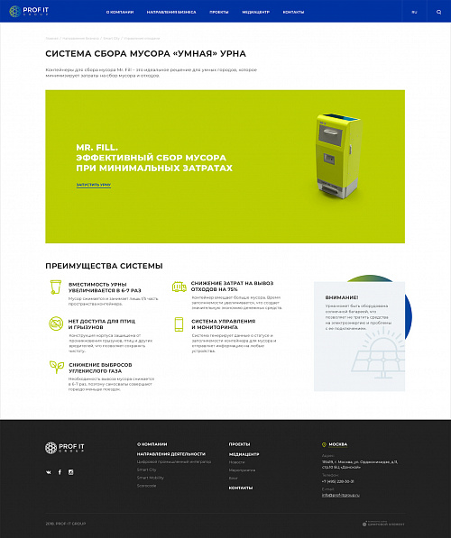 • На проекте реализована особая технология наполнения страниц – «конструктор посадочных страниц». В системе заложено 10 различных блоков, позволяющих заказчику выбрать на какой странице какие блоки будут отображаться и менять их местами.