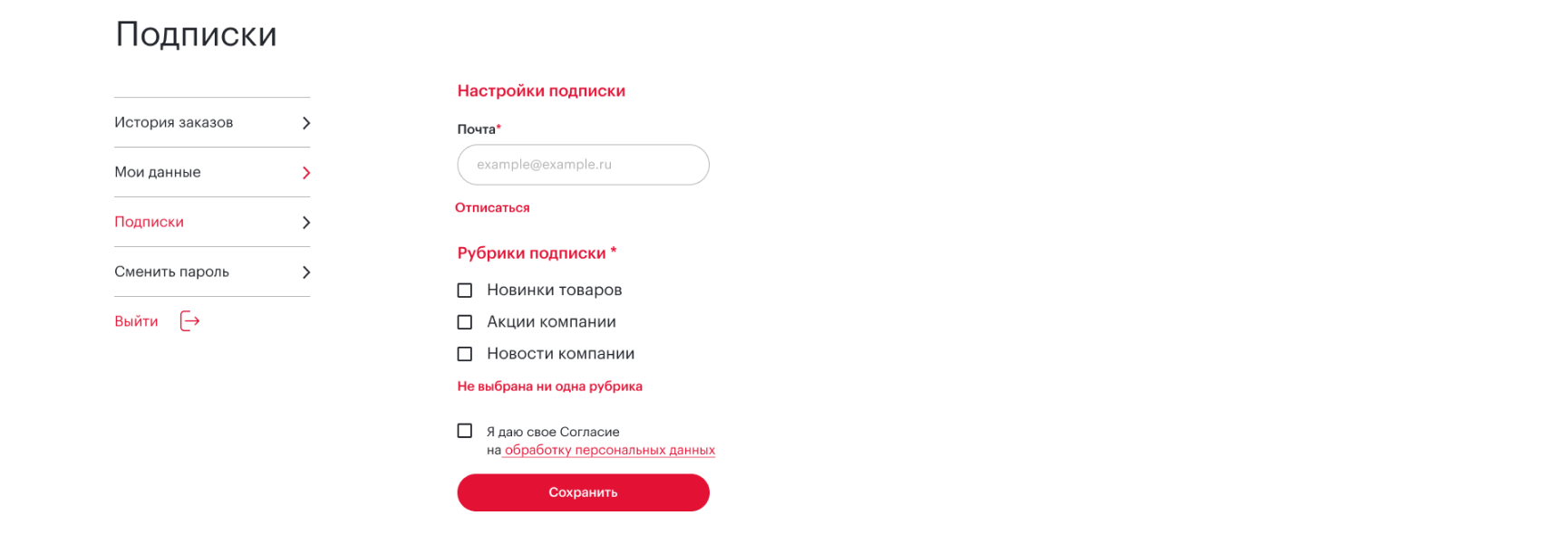 • Подписки и возможность их редактирования