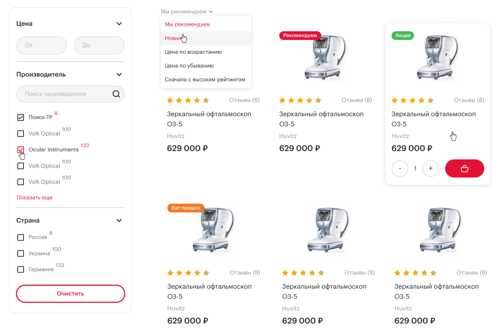 В каждой категории товаров разработан фильтр с настройкой: