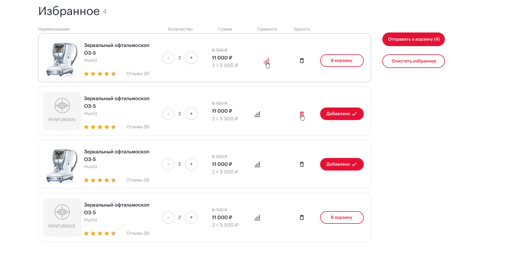 Избранное и сравнение